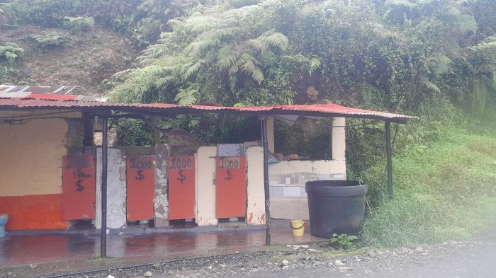 Hier in Kolumbien überlasse ich nichts dem Zufall, plane zwei Nächte im Vorraus, benutze intensiv die App IOverlander, auf der Reisende unter anderem ihre Uebernachtungsplätze mit näherer Beschreibung posten. So fand ich ein Restaurant, wo ich sogar im Haus schlafen durfte, eine Fallschirmfliegerstation, bei der ich duschen und unter dem Dach sicher mein Zelt aufstellen konnte. Diesen Menschen bin ich sehr dankbar.
