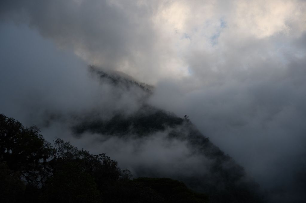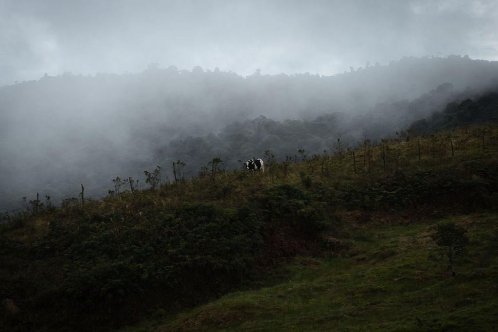 Für einen kurzen Moment durfte ich durch die sonst dicke Wolken- und Nebeldecke einen Blick auf den Gipfel des Nevado de Ruiz werfen bevor er wieder hinter einer grauen Wand verschwand. Dieser Vulkan brach das letzte Mal vor 40 Jahren aus. 25.000 Menschen starben insgesamt.