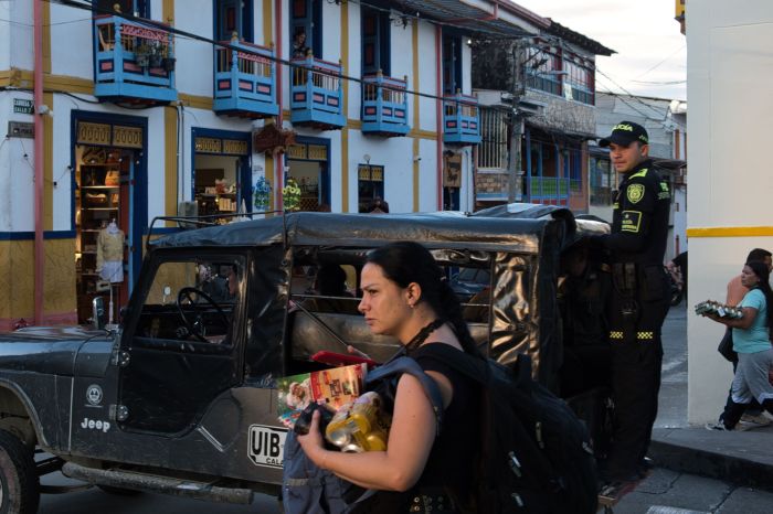 Kleine Dörfer, die mit ihren buntbemalten Holzhäusern inmitten der Caferegion Kolumbiens die Touristen anziehen. Auch abends schlenderte ich mit Kamera und ohne mulmigem Gefühl durch die Strassen.